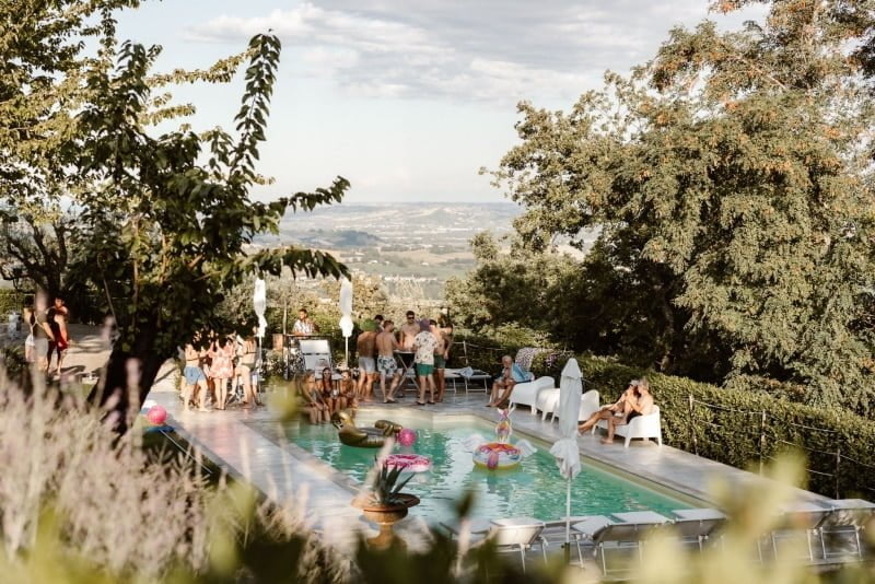 Le Stonghe heeft zijn naam te danken aan de heuvelrug La Stongha waar het landgoed op ligt dat onder de gemeente Fossombrone valt. Le Stonghe ligt aan de voet van de uitlopers van de Apennijnen in een idyllisch heuvellandschap. De ligging is ideaal met een grote diversiteit. In een straal van 20 kilometer bevindt zich de zee en het bergachtige achterland.